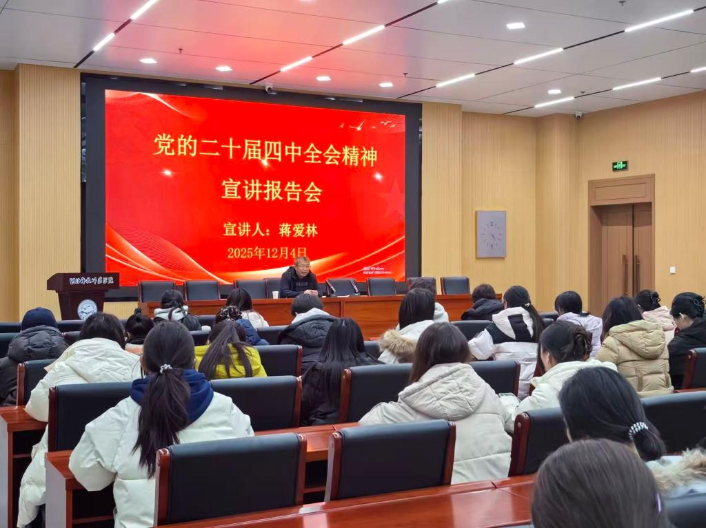 12月4日,校党委常委、副书记蒋爱林为宝盈bbin直营平台学生党员及入党积极分子作了党的二十届四中全会精神宣讲。宣讲紧扣全会核心要义,既阐释政策理论内涵,又结合高校育人实际与外语专业发展方向,为师生锚定个人成长与国家发展的结合点。