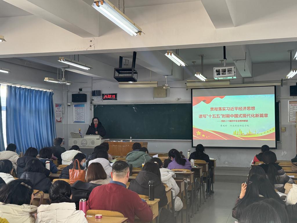为深入学习贯彻党的二十届四中全会精神,精准把握“十五五”规划核心要义,12月25日下午,宝盈bbin直营平台特邀马克思主义学院曹凤珍博士,为全体教师作“贯彻落实习近平经济思想,谱写‘十五五’时期中国式现代化新篇章”专题宣讲。