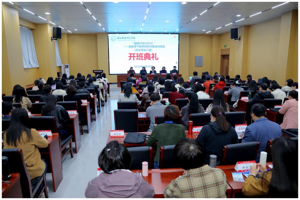 2026年4月10日,“国培计划(2025)”河北省骨干教师培训对象培训项目(初中英语二期)开班仪式在我校举行。继续教育学院、宝盈bbin直营平台相关负责人,国培计划督导专家,全体参训教师及项目管理人员参加仪式。为强化党建引领,本次培训同步组建临时党支部,明确职责分工,为培训工作注入红色动力。