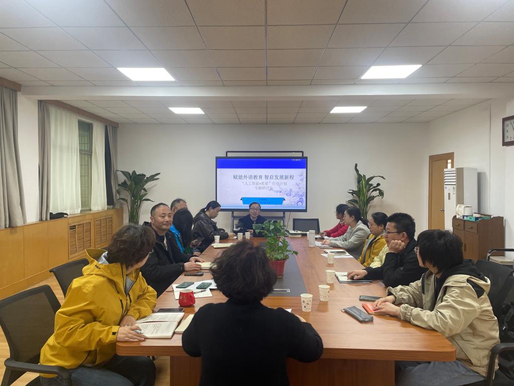 会议伊始,王院长带领全体参会人员深入学习了国家关于《“人工智能+教育”行动计划》的核心内容与工作要求,重点解读了行动计划中关于高等教育阶段推动人工智能与学科专业交叉融合、赋能教师教学、学生学习、优化人才培养模式的具体部署,结合外语学科发展趋势,分析了当前人工智能技术在外语教学中的应用现状、优势潜力及面临的挑战,明确了学院落实行动计划的核心方向与总体思路,强调要聚焦专业发展与课程建设,让行动计划真正落地生根、见行见效。